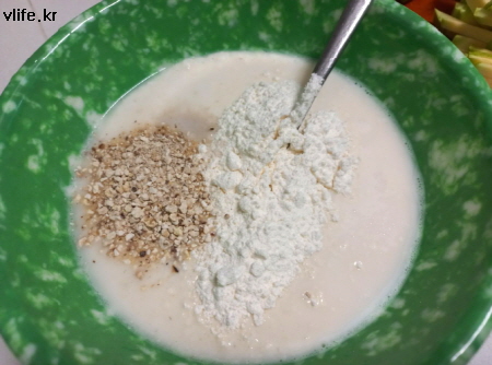 표고버섯 가루 있어서 조금 넣었고, 부침가루와 소금 약간에